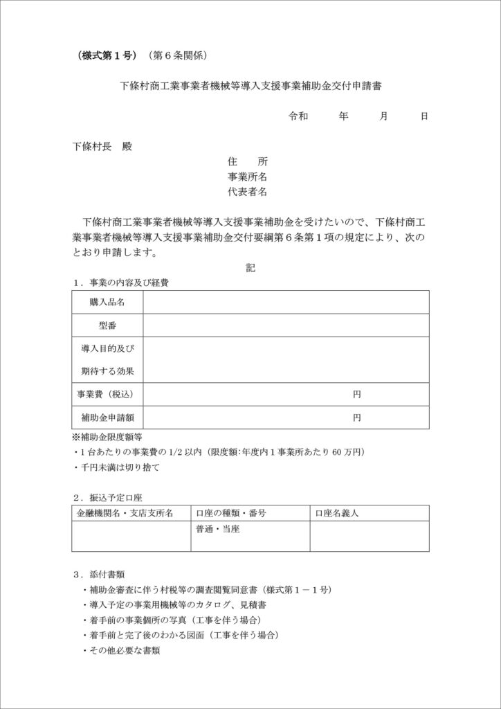 また、様式1・様式3のWord様式を所望されたい方は下條村商工会までご連絡ください。